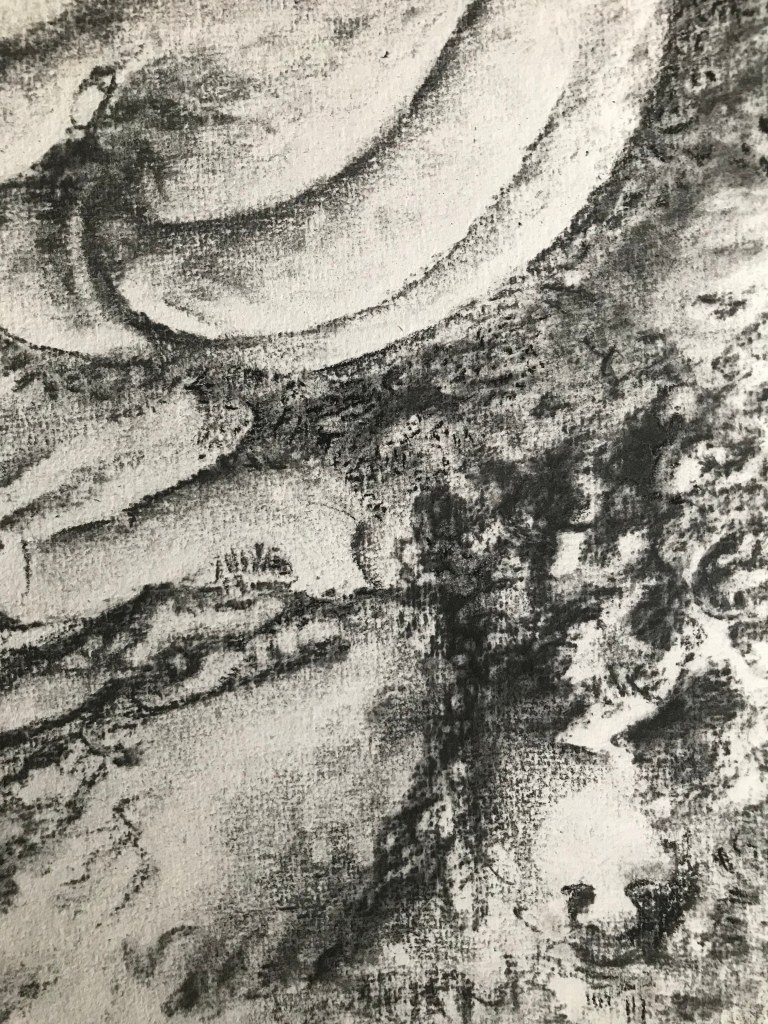 Southworth’s paintings often depict dreamlike and cosmic landscapes that are inspired by the remotest regions of Cornwall and Ireland. They reference the transformations of the calendar year, pregnancy, birth and the maternal, and the emergence of new forms of becoming. They often depict a range of animals, including birds, horses, serpents, seahorses and strange, otherworldly creatures that seem to emerge from a world beyond our own. Her work involves the use of ritual in painting and in the landscape as a way of encountering that which rests elsewhere.