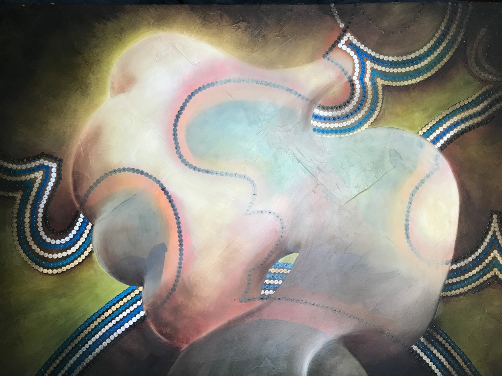 Visually and theoretically, the work itself aims for a deeper engagement with the audience, often spanning the boundary between realism and abstraction, exploring the liminal space between the visible and the invisible, psychology and geography, or, this and other worlds. This fluidity and liminality allows for multiple readings of the work and encourages ‘slow’ looking while the colour scheme of many of the works follow “The Four Scales of Colour” set out by The Hermetic Order of The Golden Dawn.