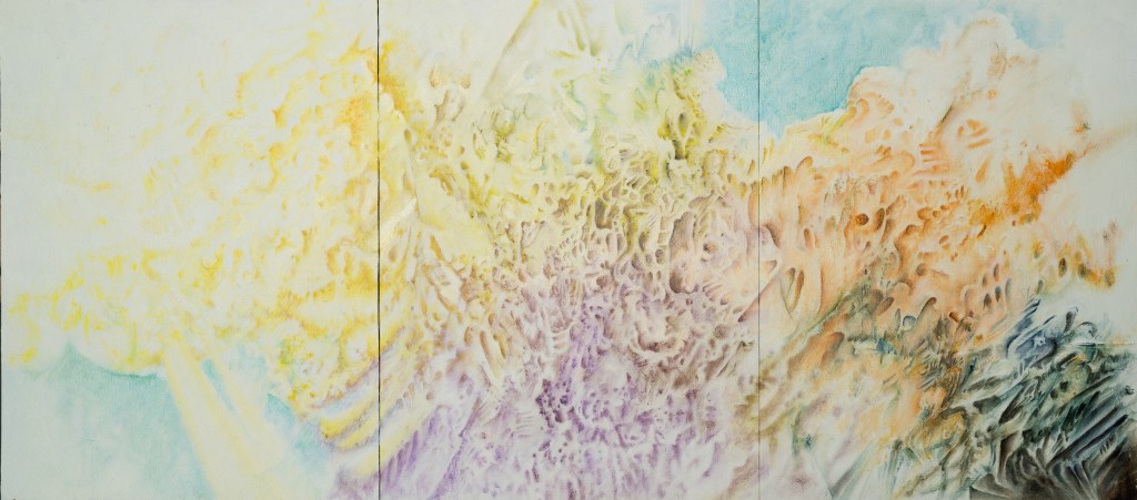 In its three manifestations, the Order of the Sun and Moon became a living context: a shared symbolic and experiential field where artworks, ritual, and expanded states of consciousness could meet. Two exhibitions at The Crypt Gallery in St Ives and one at the College of Psychic Studies in London provided settings in which the Order found provisional form. My threads explored solar, lunar, and mercurial transformations through symbolic languages, calendrical cycles, and alchemical processes—painting as ritual, ritual as enquiry, each movement aligned with an evolving, subtle process of becoming.